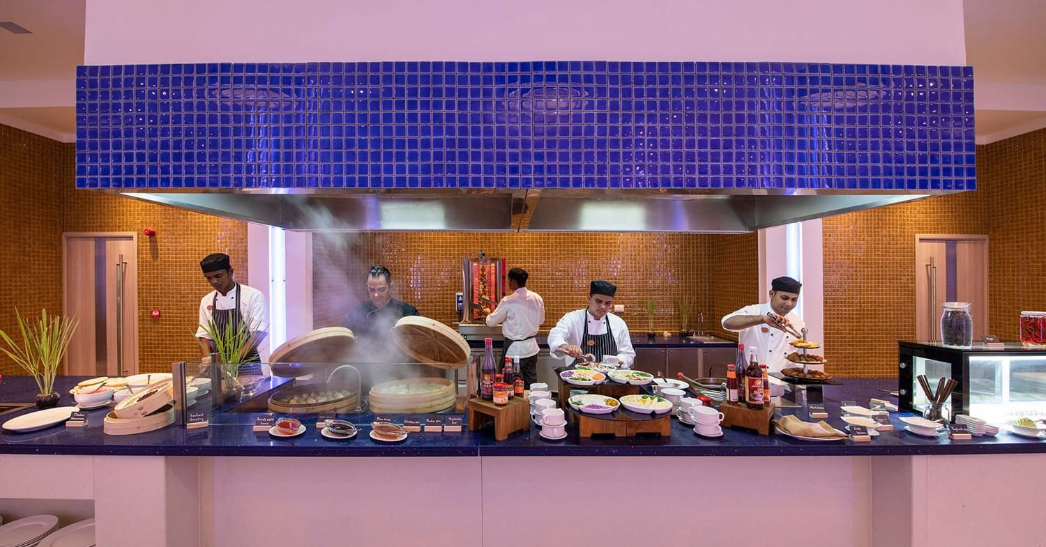 Emerald Maldives offers a diverse culinary experience with its Deluxe All-Inclusive plan, featuring four distinct restaurants:​Aqua Restaurant: International cuisine served buffet-style for breakfast, lunch, and dinner.​Beach Club Grill: Mediterranean dishes focusing on fresh seafood and meats.​Amazònico Restaurant: Latin American flavors with a vibrant atmosphere.​Le Asiatique Restaurant: Asian specialties, including teppanyaki and sushi.​Additionally, guests can enjoy beverages and light snacks at the Sunset Pool Café and Sunrise Café. ​