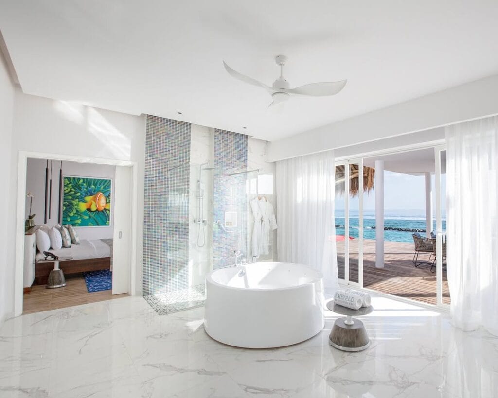 Eco-Conscious Design: Emerald Maldives places strong emphasis on sustainability, using natural building materials such as bamboo and langhi-langhi leaves throughout its architecture. The island continues to enhance its environmental practices and aims to shift more of its operations toward renewable energy over the coming years.